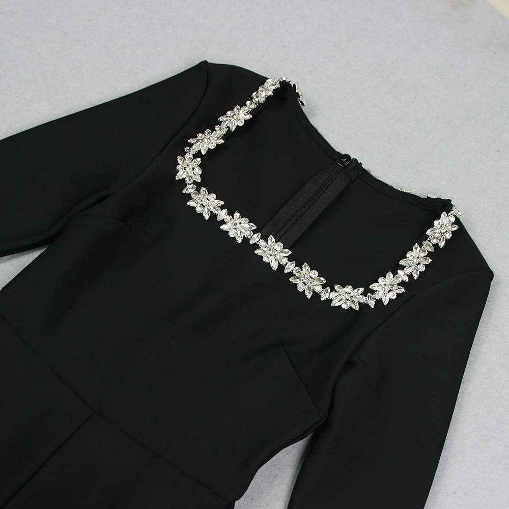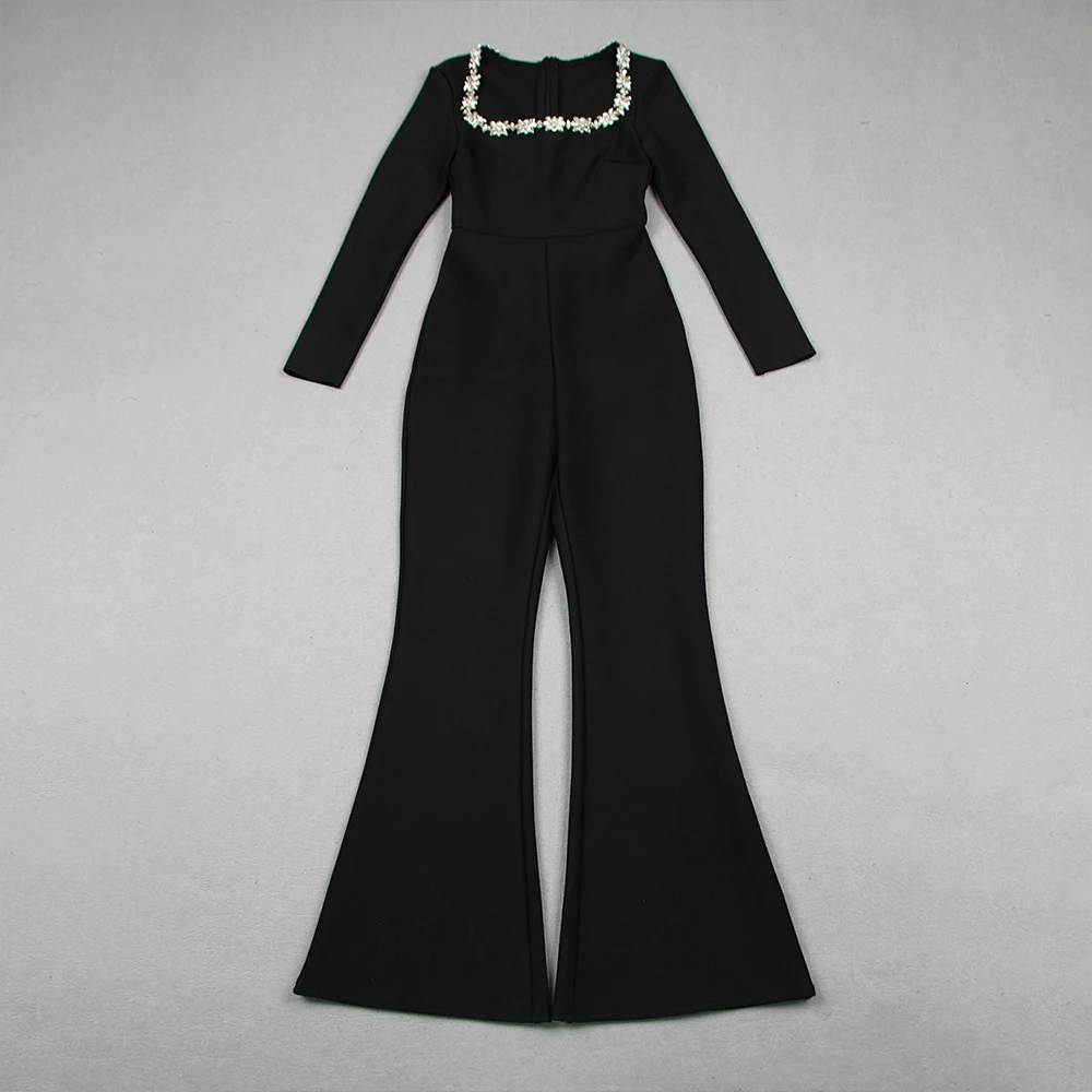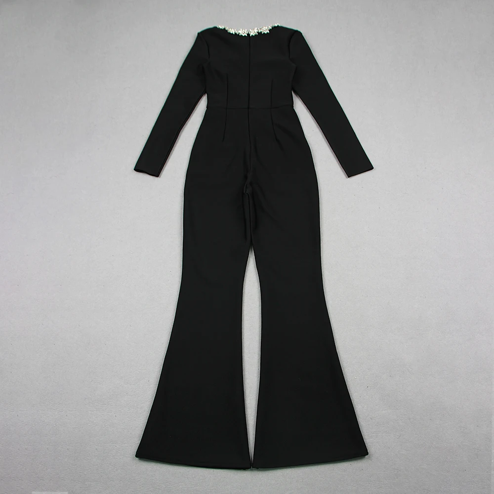 • 2024 New Women Bandage Jumpsuits Sexy Beading Flare Pants Bodycon Clothes Elegant Jumpsuits