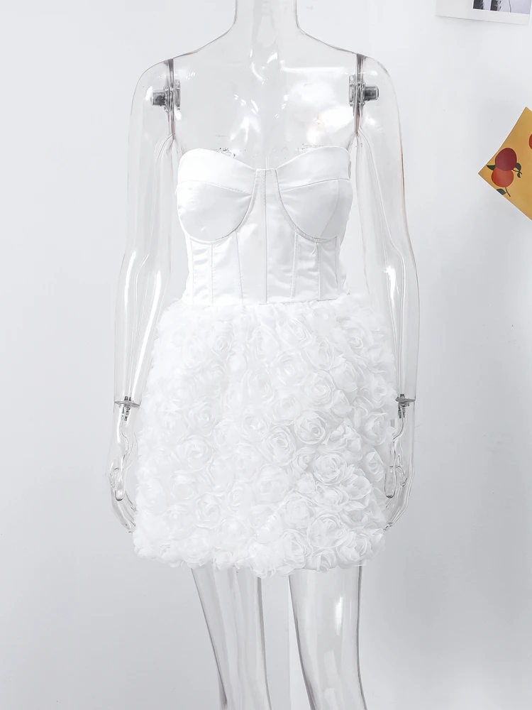 • Elegant High Waist Evening Party Dress Chic 3D Flower Tube Dresses for Women Female White 2025 Spring Sleeveless Backless Robes