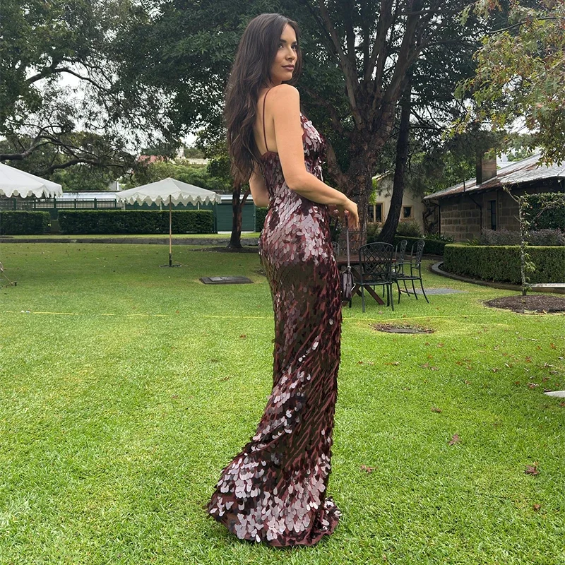 Sexy Sequin Long Party Dress Women Slim Slip Hollow Out Shiny Backless Sleeveless Maxi Dresses Female 2025 Summer Lady Robes