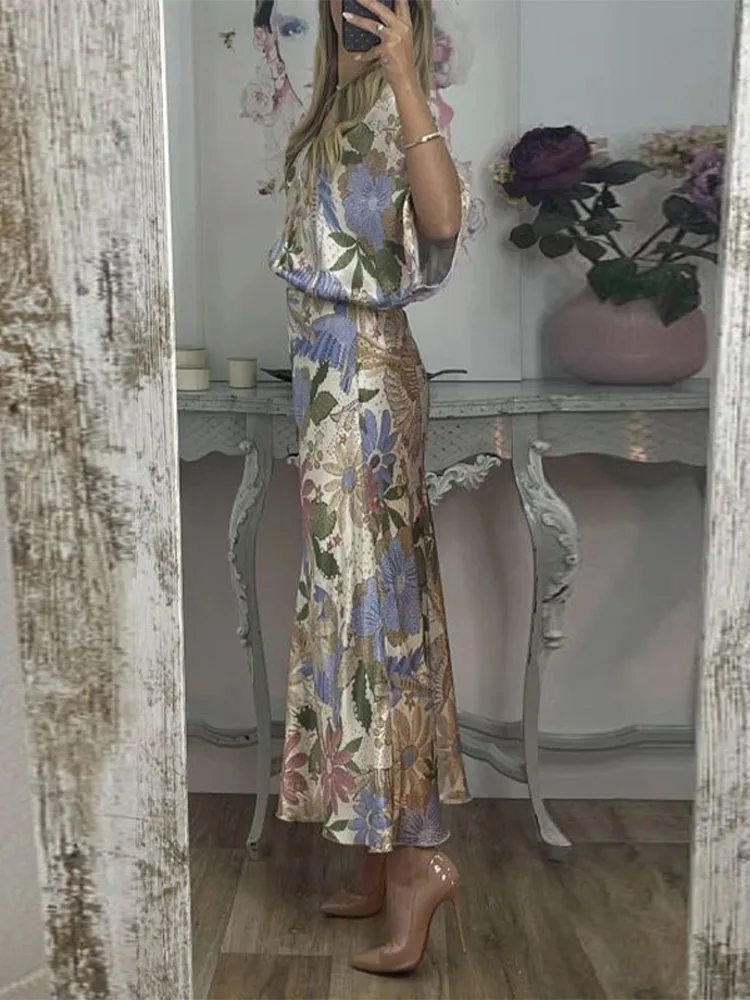 • Printed Women's Shirt Skirt Suit V-neck Three Quarter Sleeve Shirts High Waist Skirts Lady Set 2025 Autumn Evening Party Outfits