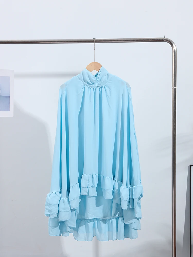 • Elegant Multi Layers Ruffles Women Short Dress Loose Turtleneck Flare Sleeve Shirt Dresses Female 2025 Spring Lady Party Robes